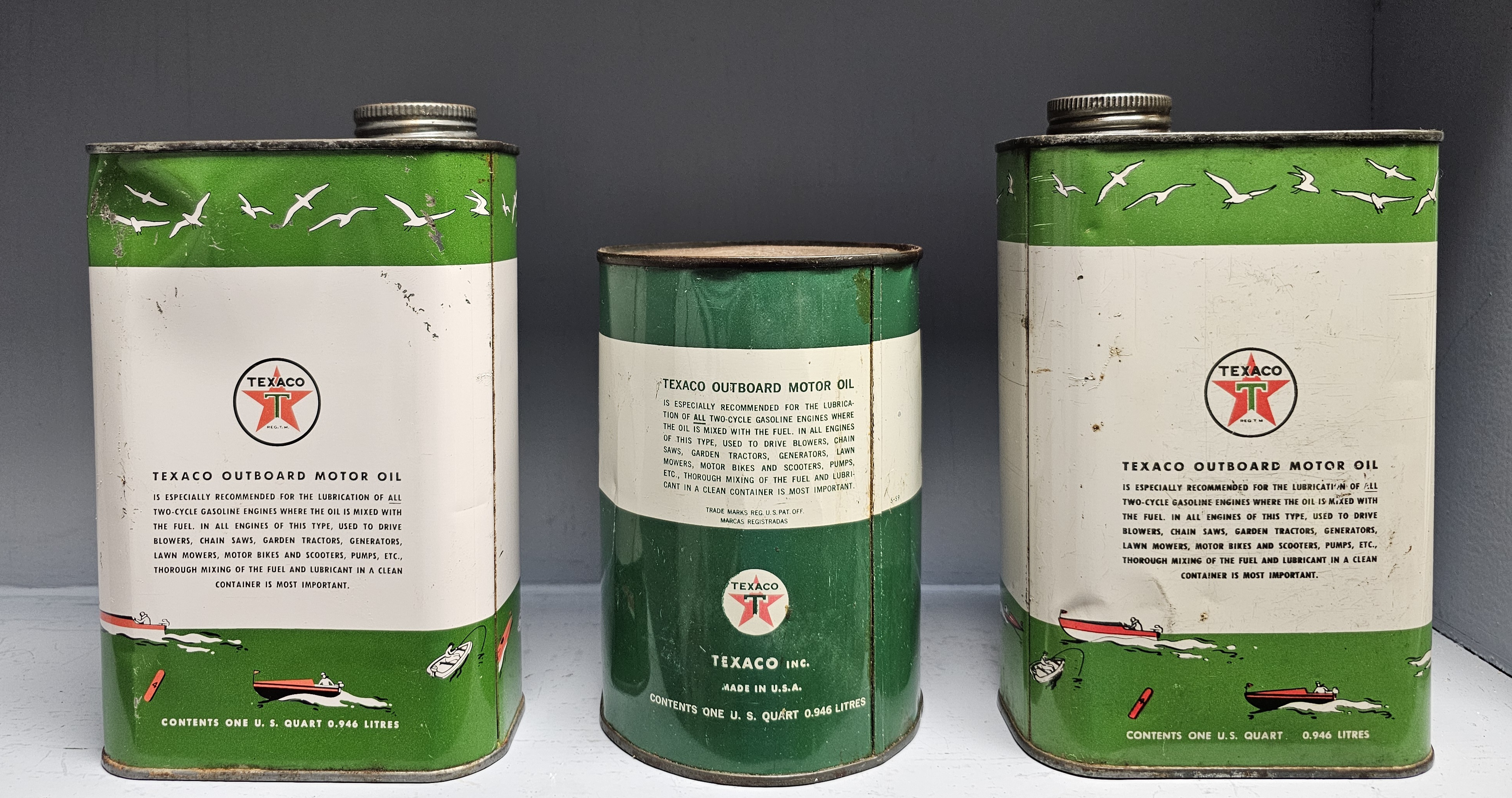 Rare 1940’s Texaco Aircraft & Marfak Motor Oil Can Lot of 3, all three cans are in VG condition. Rare to find these in this condition.
