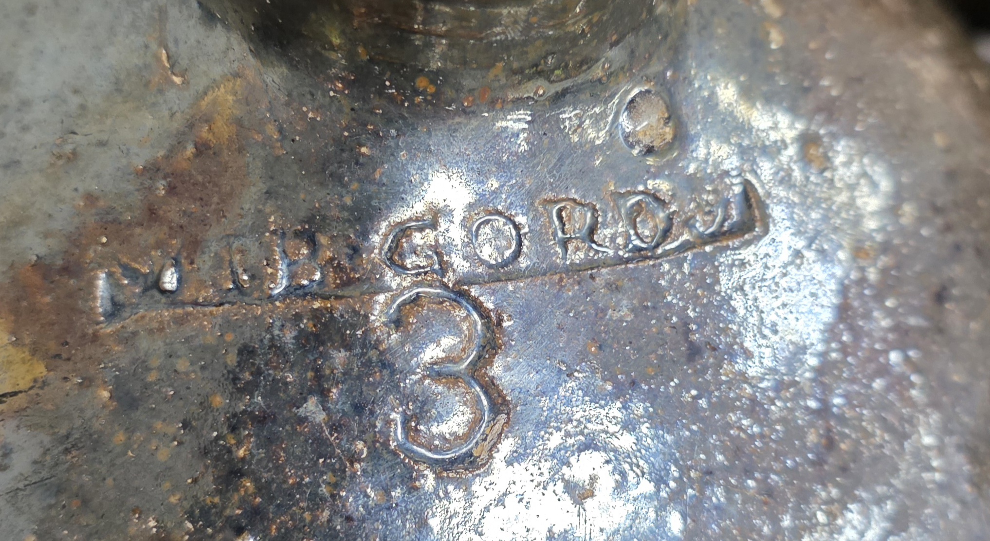 WTB Gordy Three Gallon Signed Jug. Really nice example of a slipped glaze signed WTB Gordy jug this piece actually has a little bit of kiln fragmentation on the top left shoulder of the jug. The condition of this example is very good with one in significant rim edge glaze flake. Strong stamp just at the base of the neck and shoulder. A graduation for any Gordy collector or southern pottery mark collectors. No cracks or repairs. Standing: 15 ¼" tall