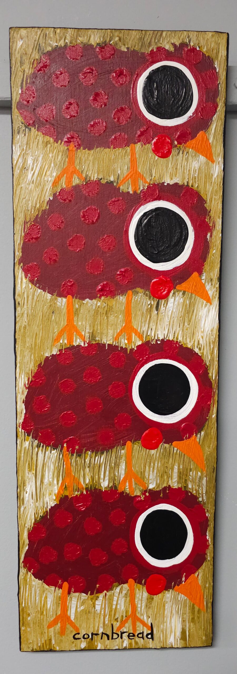 Cornbread “Red Dot Chicks” Folk Art Painting