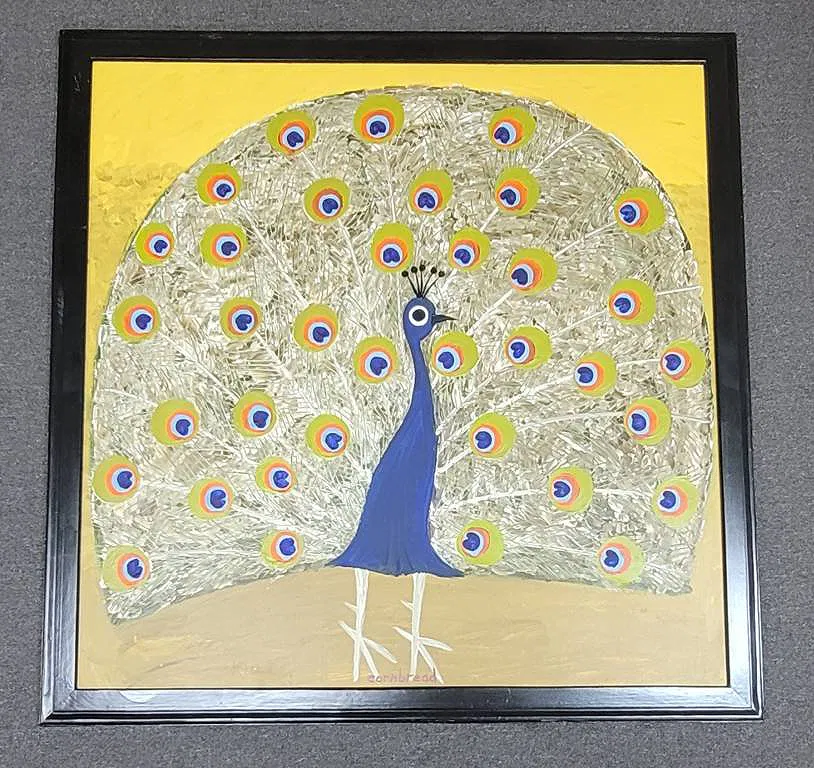Important Cornbread “Peacock” Folk Art Painting