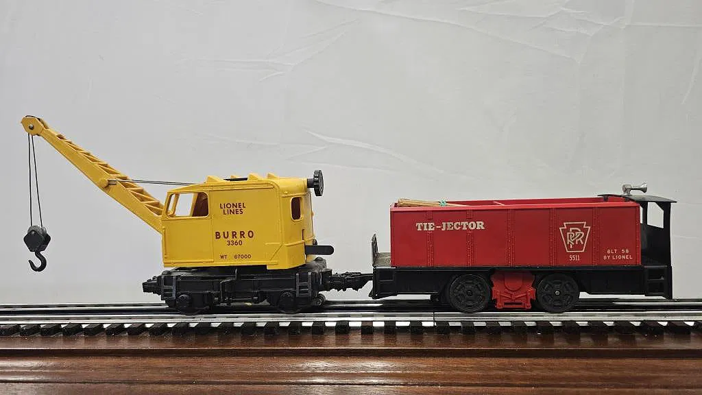 LIONEL POST WAR PRR TIE-JECTOR & 3360 BURRO CRANE